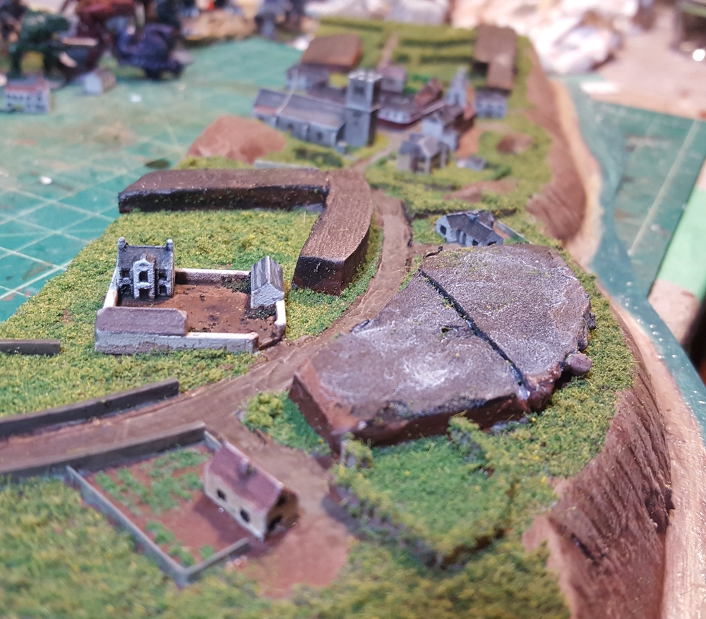 village_1_6Jan2020 January 6, 2020 1000 × 877 Small Buildings & Tiny Ships, Part Three The farms outside the village. Note vegetable garden in the nearest farm. Click for larger.